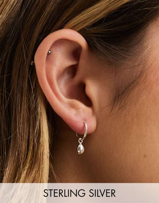 Kingsley Ryan – Creolen aus silberfarbenem Sterlingsilber mit Anhänger in Tropfenform, 12 mm