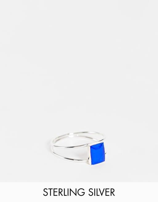 Kingsley Ryan – Doppelter Bandring mit blauem Stein aus Sterlingsilber