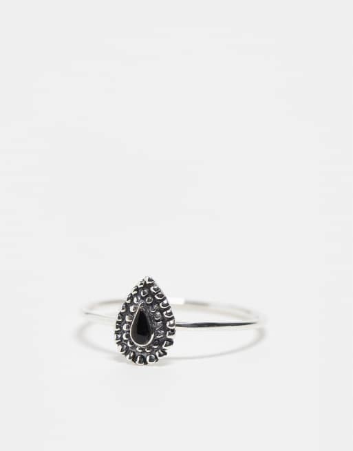 Kingsley Ryan – Ring aus Sterlingsilber mit schwarzem Onyx in Tropfenform