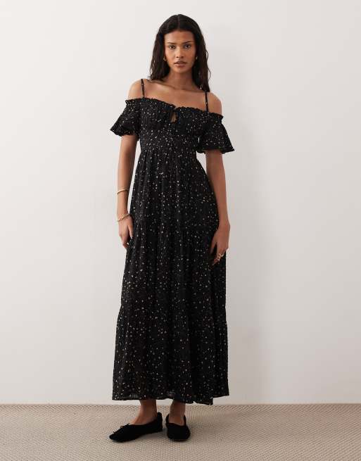 Kiss The Sky – Indi Picnic – Maxikleid in Schwarz mit Blumenmuster