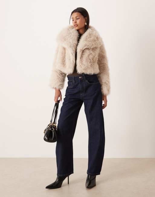 Kiwi & Co – Lyla – Cropped-Jacke aus Kunstpelz in Creme mit Oversize-Kragendetail