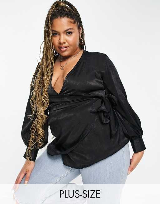 Koco & K Plus – Oberteil in Schwarz mit voluminösen Ärmeln und Wickeldetail