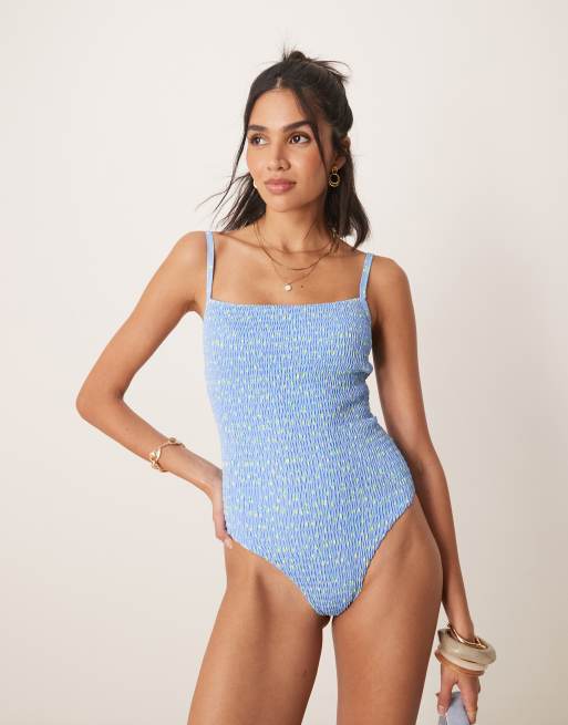 Kulani Kinis – Lemon Bloom – Badeanzug in Blau mit tiefem Rückenausschnitt
