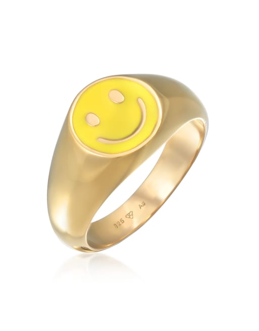 Kuzzoi – Herren-Siegelring aus 925er Sterlingsilber in Gelb mit Smiley-Motiv und schwarzer Emaille