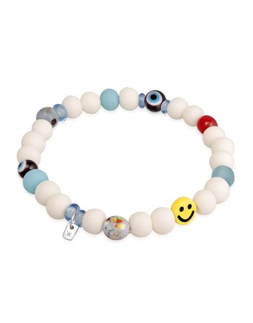 Kuzzoi – Perlenarmband für Herren aus 925er-Sterlingsilber in Weiß mit Smiley-Perlen und Kunstharz-Perlen