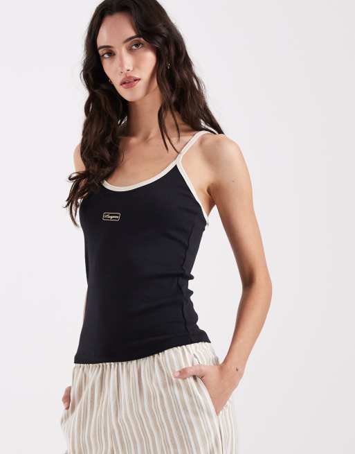 Laagam – Memfis – Tanktop in Schwarz mit farblich abgesetzten Trägern