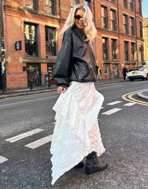 Labelrail x Daisy Birchall – Strukturierter, mehrlagiger Maxirock im Boho-Stil in Weiß