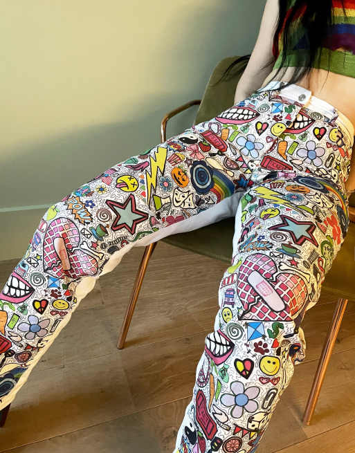 Labelrail x Sophia Hadjipanteli – Gerade Jeans mit mehrfarbigem Kritzel-Print