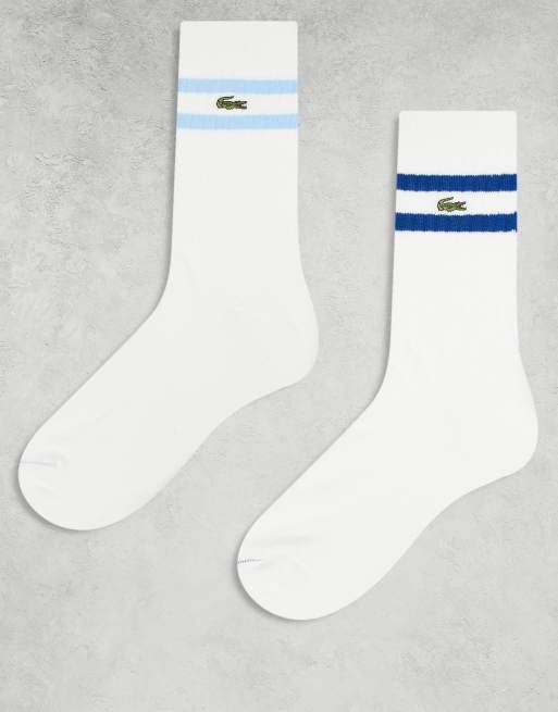 Lacoste – 2er-Pack Socken in Weiß mit Streifendetail