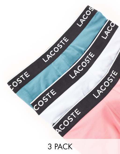 Lacoste – 3er-Pack lässige Unterhosen in Pastellfarben mit schwarzem Bund