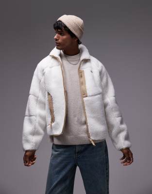 Lacoste – Fleece-Jacke in Weiß mit Reißverschluss