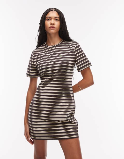 Lacoste – Gestreiftes Mini-T-Shirt-Kleid in Braun