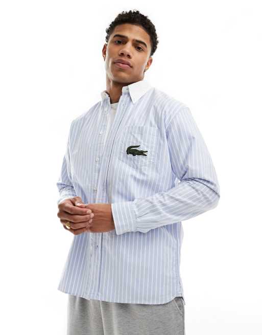Lacoste – Hemd in gestreiftem Blau mit Kontrastkragen