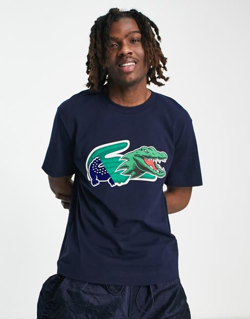 Lacoste – Holiday – T-Shirt in Marineblau mit großem Krokodil-Print