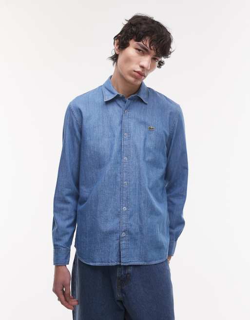 Lacoste – Langärmliges Jeanshemd in mittelblauer Waschung