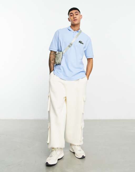Lacoste – Locker geschnittenes Polohemd in Hellblau mit großem Logo