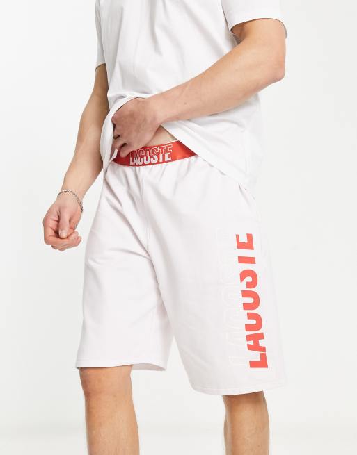 Lacoste – Lounge-Shorts in gebrochenem Weiß mit kontrastierendem Bund