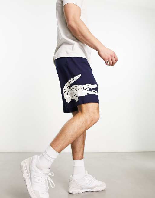 Lacoste – Lounge-Shorts in Marineblau mit großem Logo