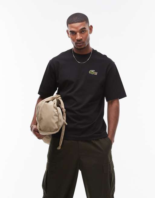 Lacoste – Oversize-T-Shirt in Schwarz mit großer Logo-Stickerei