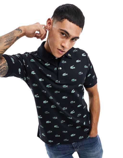 Lacoste – Polohemd in Marineblau mit sich wiederholendem Logo