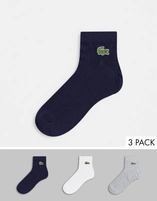 Lacoste – Sneakersocken in Marine/Weiß/Grau, im 3er-Pack
