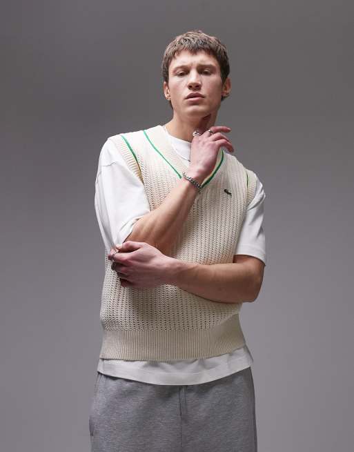 Lacoste – Strickpullover in Wollweiß mit V-Ausschnitt