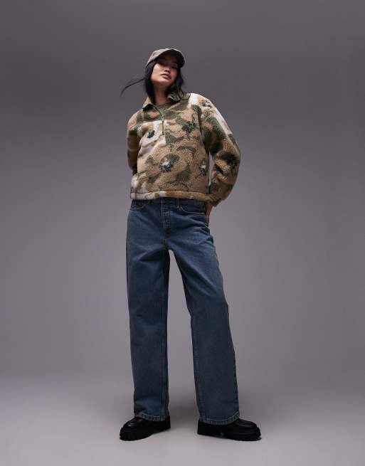Lacoste – Sweatshirt in Beige mit Military-Muster und kurzem Reißverschluss