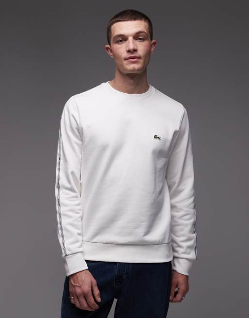 Lacoste – Sweatshirt in Weiß mit Logostreifen und Rundhalsausschnitt