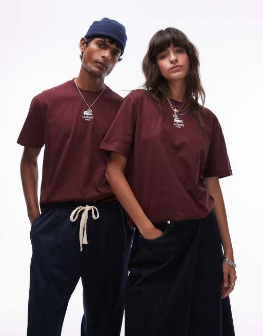 Lacoste – T-Shirt in Burgunderrot mit Logo auf der Vorderseite