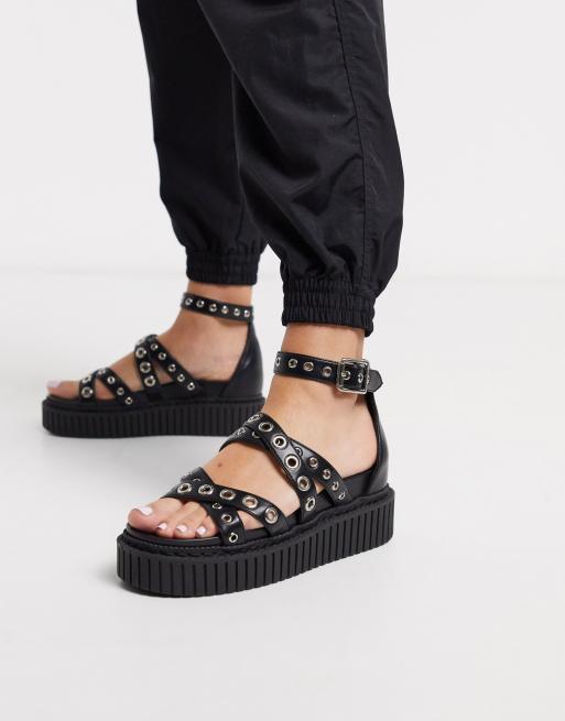 Lamoda – Creeper – Schwarze Sandalen mit Ösen-Details