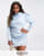 Lavish Alice Plus – Satin-Minikleid in Babyblau mit Wasserfallausschnitt