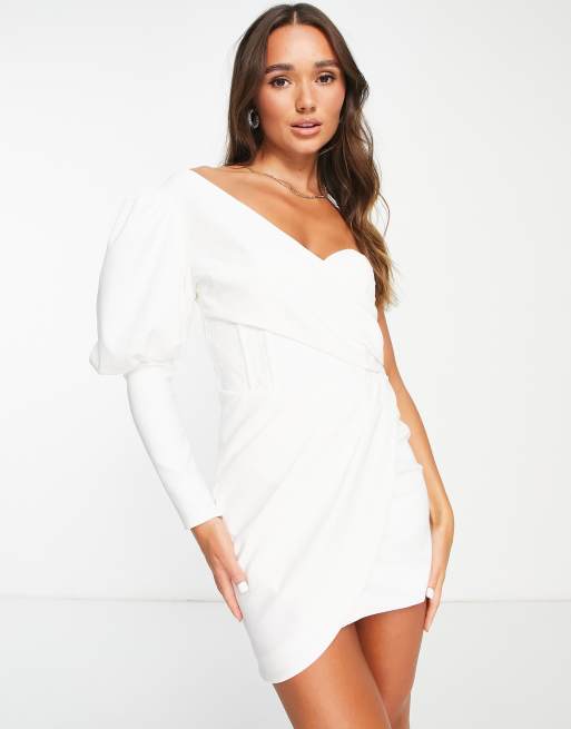 Lavish Alice – Minikleid in Weiß mit One-Shoulder-Träger