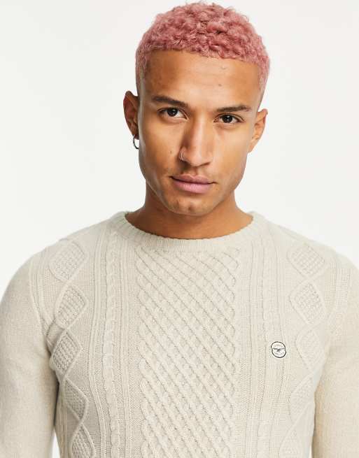 Le Breve – Schwerer Strickpullover mit Zopfmuster in Stein