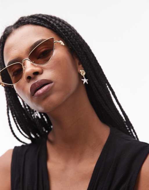 Le Specs – The Soiree – Schmale Cat-Eye-Sonnenbrille aus Metall in Gold- und Schildpatt-Optik