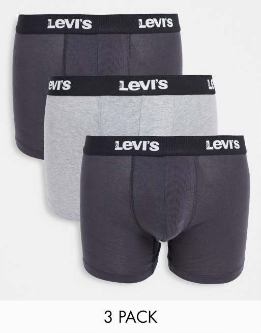 Levi's – 3er-Pack Unterhosen in Schwarz/Grau mit kontrastierendem Logobund