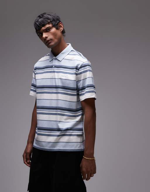 Levi's – Authentic – Mehrfarbig gestreiftes Jersey-Polohemd in Hellblau mit Logo