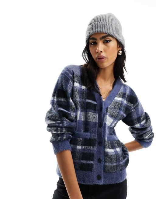 Levi's – Betty – Flauschige Strickjacke in kariertem Blau