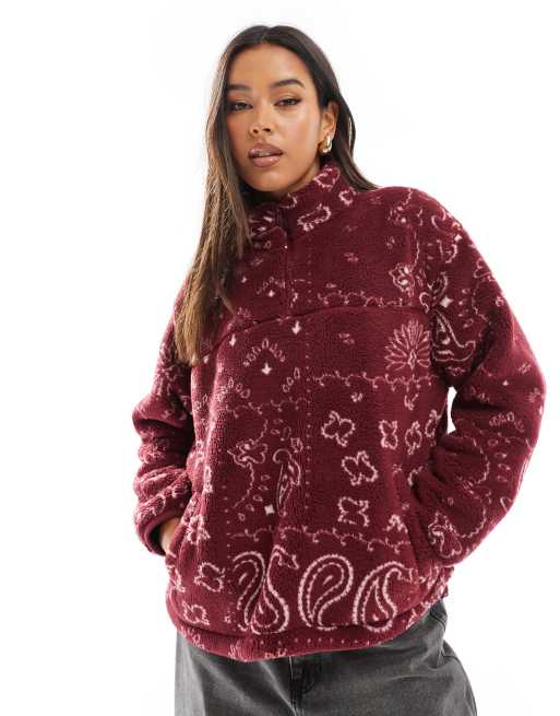 Levi's – Canyon – Sweatshirt aus Sherpa-Teddyfell in Burgunderrot mit kurzem Reißverschluss und Bandana-Print