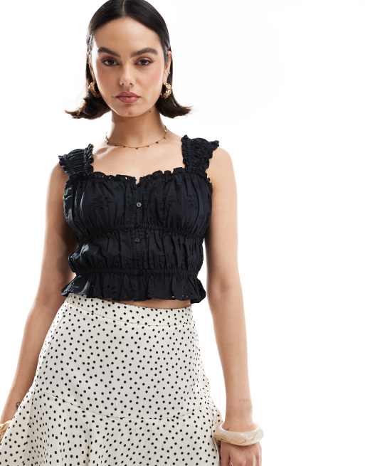 Levi's – Cropped Top in Schwarz mit Lochstickerei