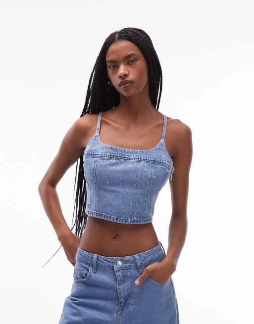 Levi's – Jadine – Camisole aus Jeansstoff in Blau mit All-over-Verzierung im Korsett-Design