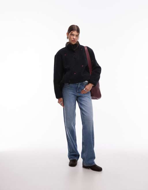 Levi's Kasey – Fleece-Pullover in Schwarz mit Blumenmuster