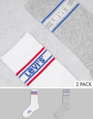 Levi's – Kurz geschnittene, gerippte Socken mit Logo in Weiß und Grau im 2er-Pack