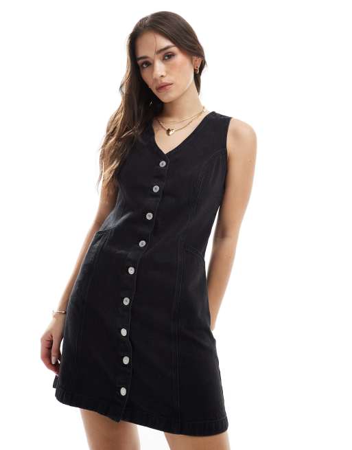Levi's – Kurzes Jeanskleid in Schwarz mit Knopfleiste