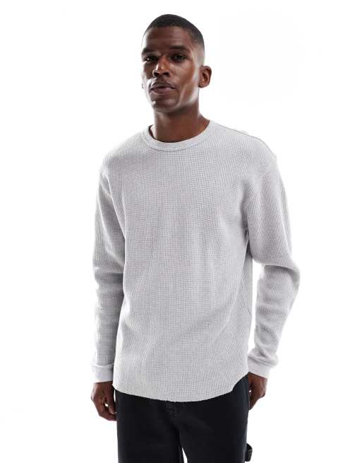 Levi's – Langarm-Thermoshirt in Hellgrau meliert mit Waffelstruktur