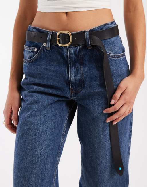 Levi's – Langer Ledergürtel in Schwarz