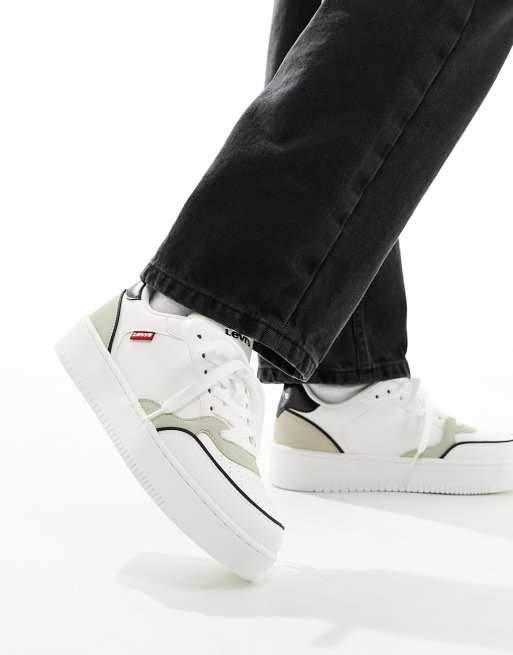 Levi's – Paige – Leder-Sneaker in Weiß-Cremeweiß-Mix mit rotem Logo-Etikett
