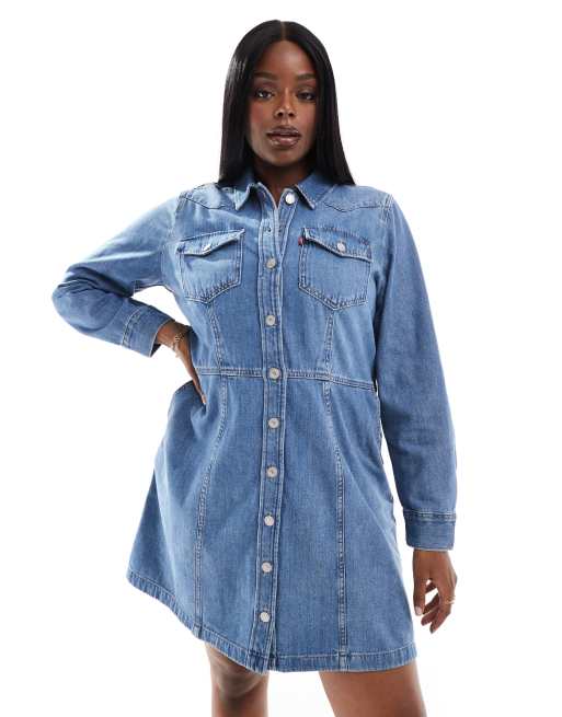 Levi's Plus – Flynn – Western-Jeanskleid in Mittelblau