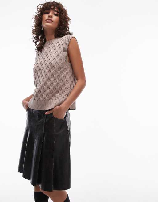 Levi's – Pulloverweste in Beige mit Zopfstrickmuster