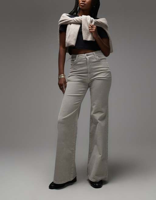 Levi's – Ribcage Bells – Ausgestellte Jeans in hellgrauer Waschung mit hohem Bund