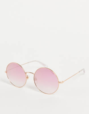 Levi's – Runde Sonnenbrillen in Goldoptik mit lilafarbenen Gläsern